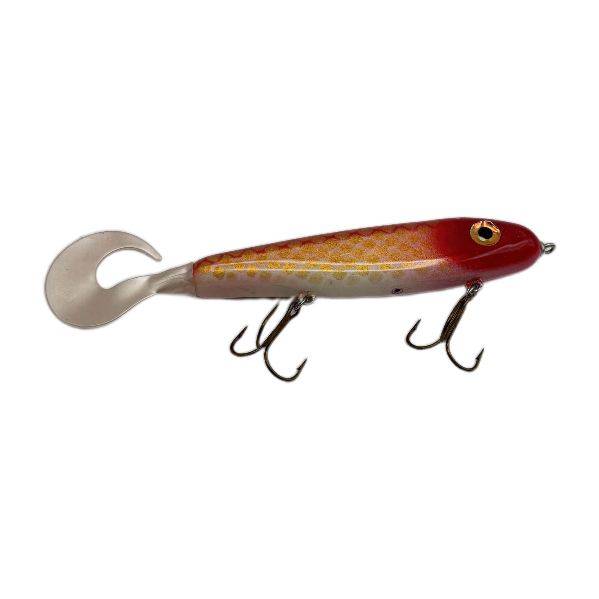 Individually hand painted, the Phantom Softail combines the giant 2’ side-to-side wander and durability of a Phantom glide bait with the realistic feel and twerk of a replaceable grub tail. Sinks with a nervous wobble at a reliable 1’ per second, letting you dissect open water reefs, weedlines or sections of emerging weed beds with a surgeon’s precision. A threaded brass receiver securely locks in our interchangeable Phantom weights to fine tune sink rates and intrude any strike zone, making the Softail a countdown’s dream for suspended fish.