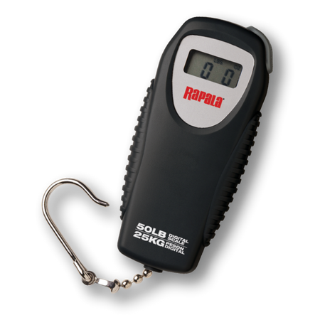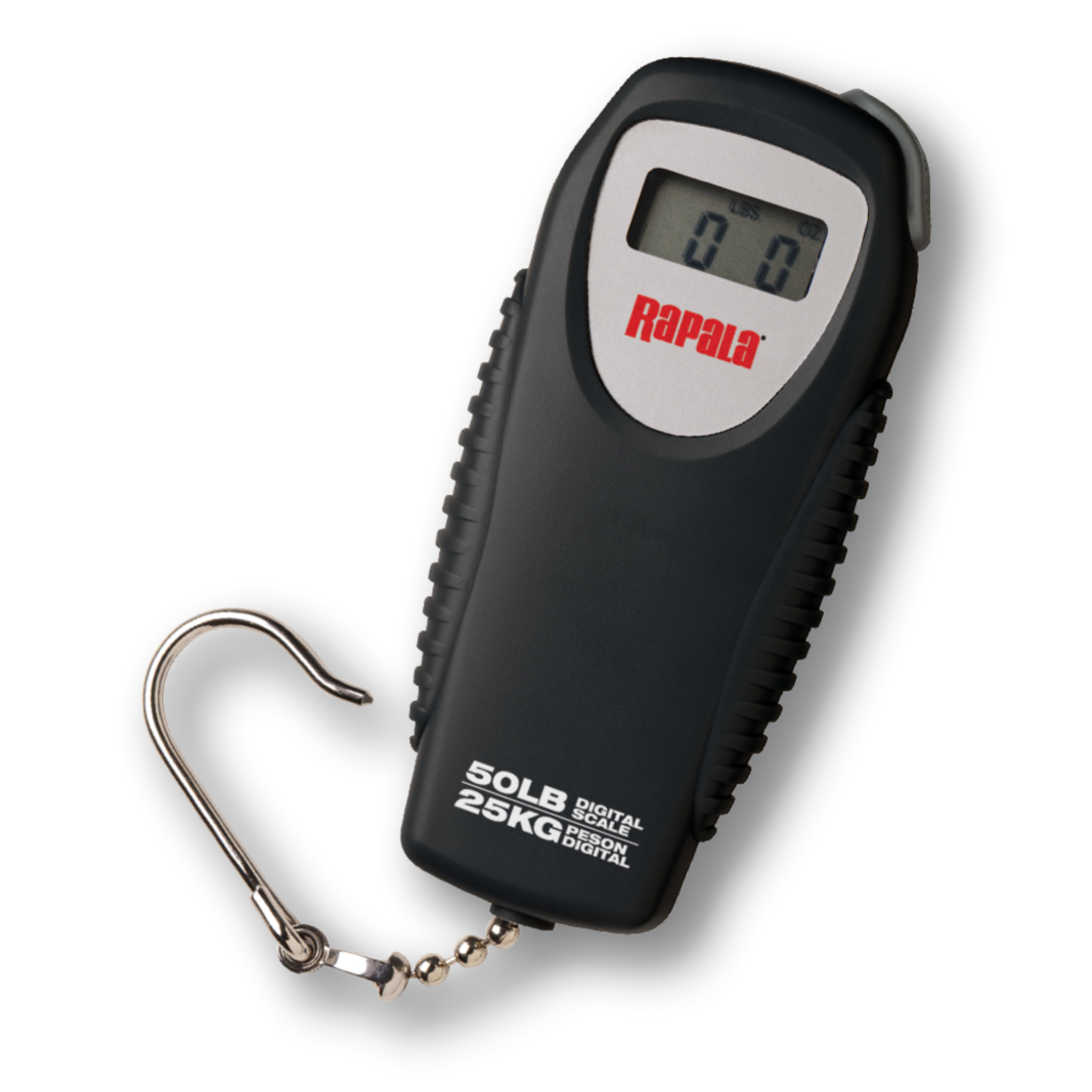 The Mini Digital Scale measures up to 50 lbs. with precision accuracy. Pocket size features digital display, tare weight, 4 minute shutoff feature ensures 400 hour life with one 9V battery (not included). Chrome plated hook and water resistant design. Pound or kilogram measure.