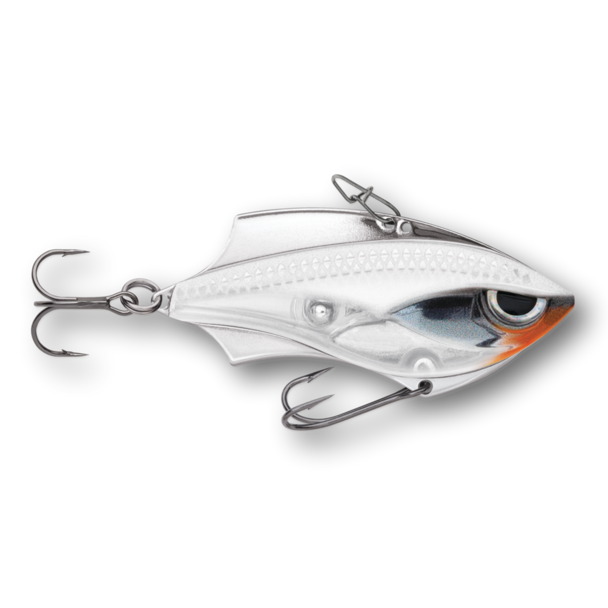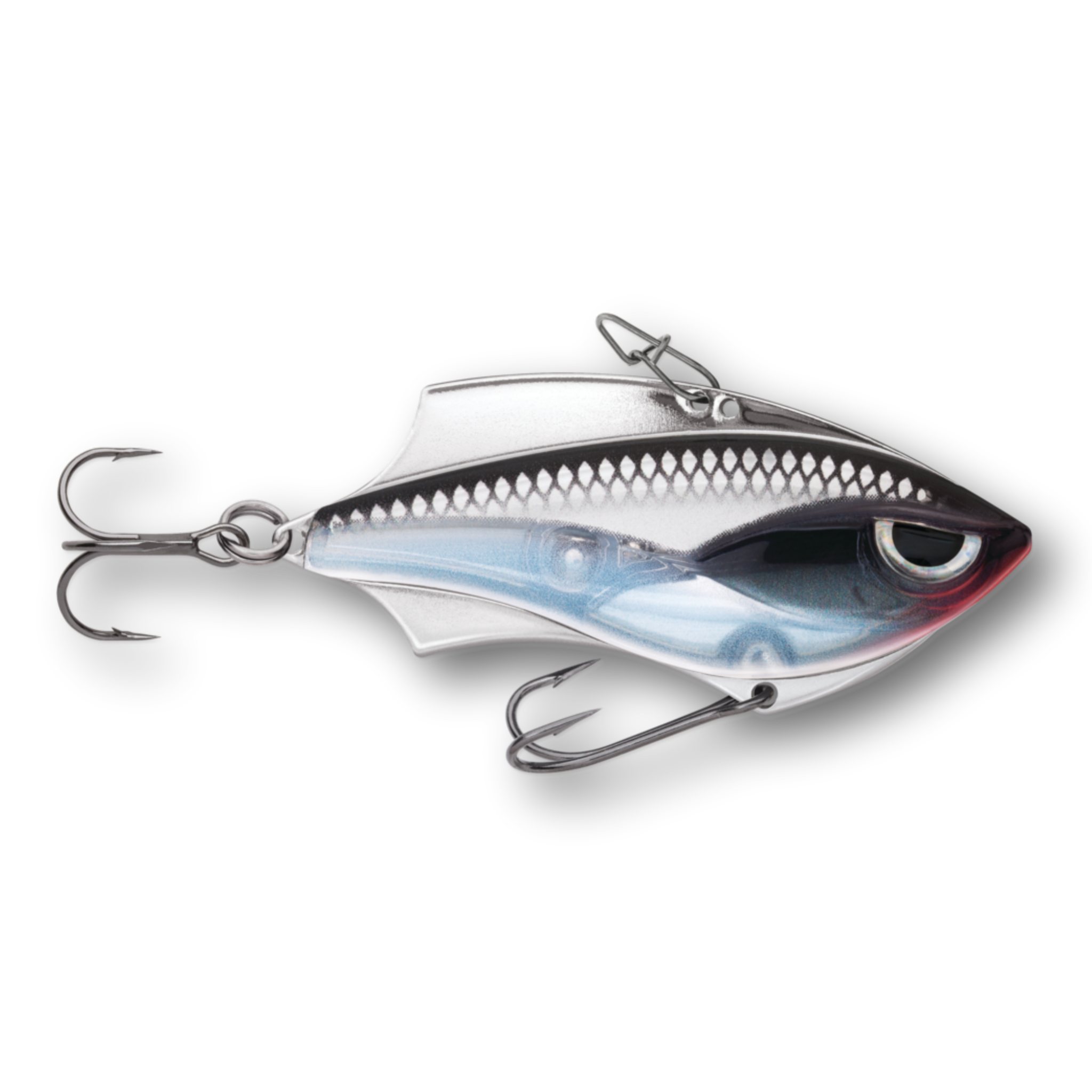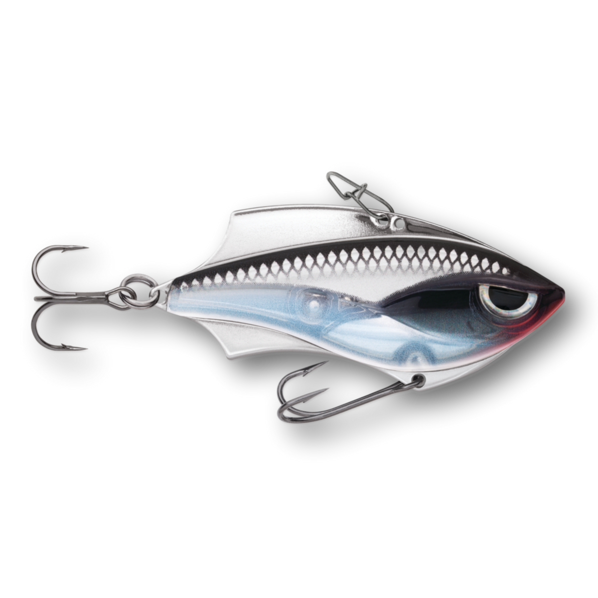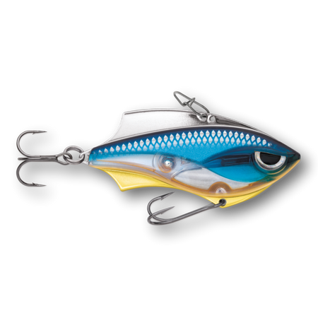 The Rap-V Blade is the perfect balance of metal, plastic and Rapala® expertise. This extremely versatile bait produces instant vibration on the lift or retrieve. The Rap-V can be worked in variable depths with a wide range of techniques; cast out, make contact with bottom, lift & let fall in a yo-yo style retrieve. For vertical presentation, drop to bottom and twitch for a jigging action. Two line tie positions; front line tie for a slower fall swimming action, rear line tie for a faster fall, head down action. The Rap-V Blade delivers the right action and attitude and is a perfect choice for any species of gamefish.