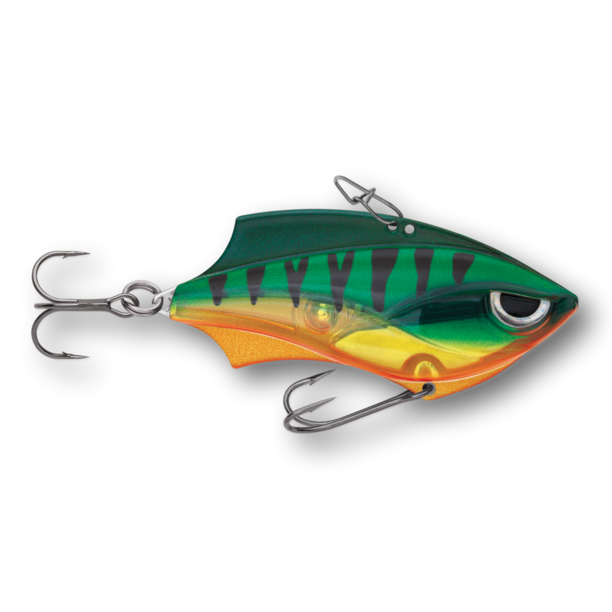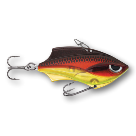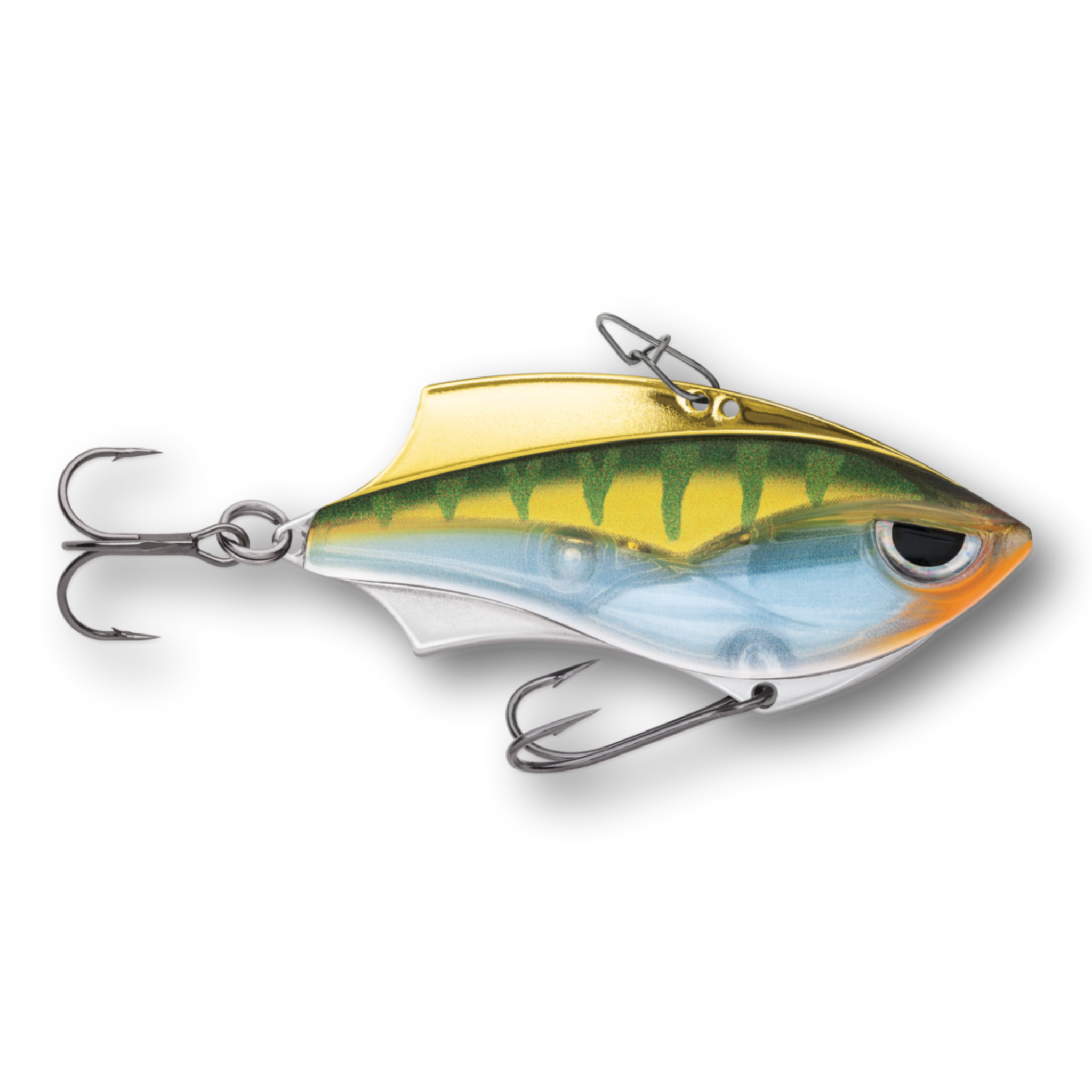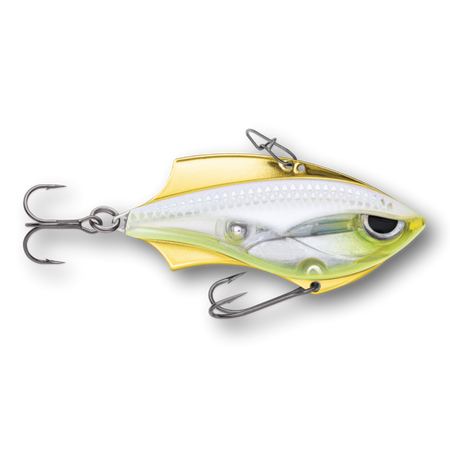 The Rap-V Blade is the perfect balance of metal, plastic and Rapala® expertise. This extremely versatile bait produces instant vibration on the lift or retrieve. The Rap-V can be worked in variable depths with a wide range of techniques; cast out, make contact with bottom, lift & let fall in a yo-yo style retrieve. For vertical presentation, drop to bottom and twitch for a jigging action. Two line tie positions; front line tie for a slower fall swimming action, rear line tie for a faster fall, head down action. The Rap-V Blade delivers the right action and attitude and is a perfect choice for any species of gamefish.