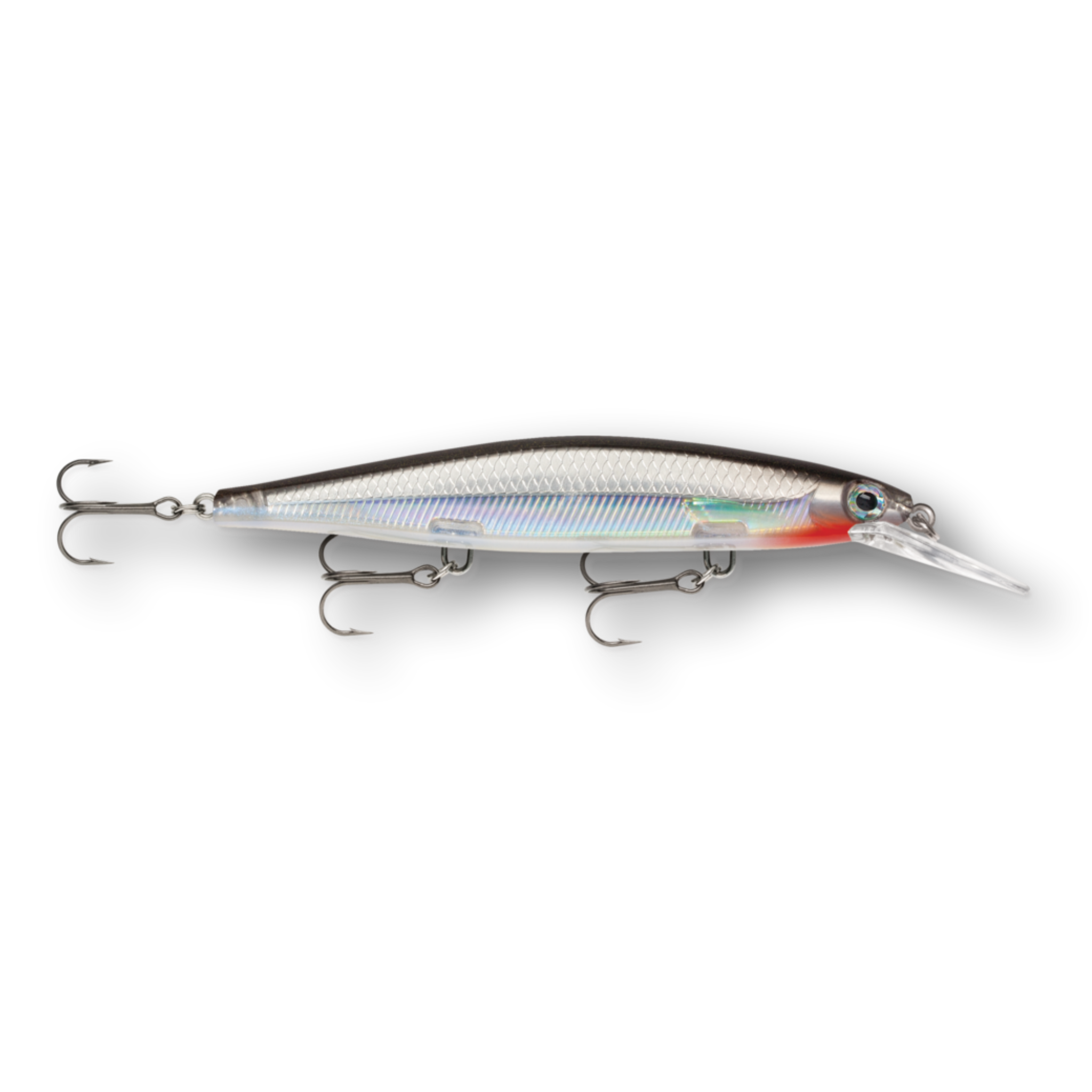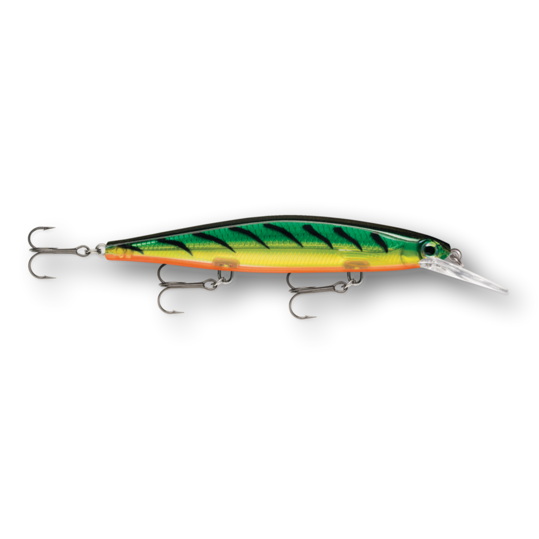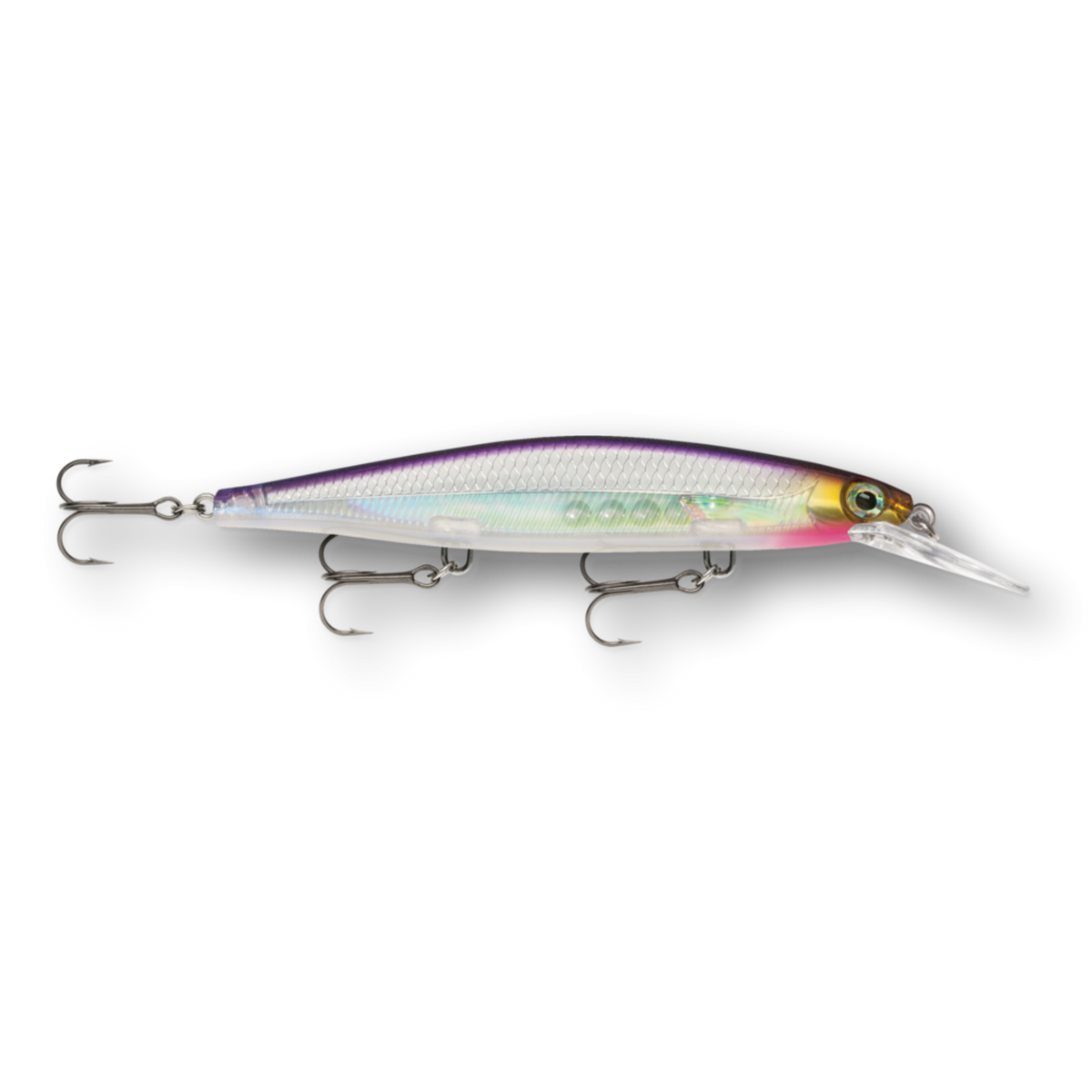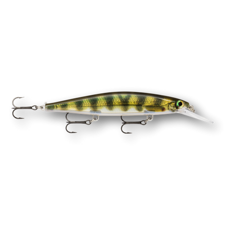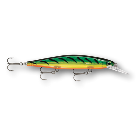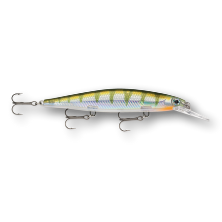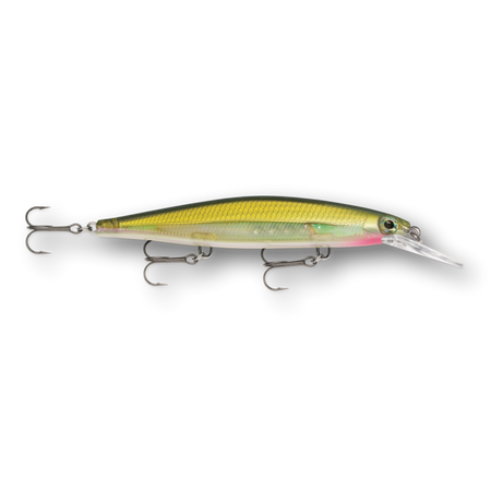 The Shadow Rap® Deep combines a horizontal struggle with a vertical fade that perfectly mimics a minnow in trouble in the 4-8 foot depth range. Rapala has perfected the natural minnow action in this new jerkbait that triggers fish in three ways: on the kick, on a slow fading fall and on the snap back to life. Most jerk baits continue on a forward plane with each jerk. Not the Shadow Rap® Deep. It kicks almost 180 degrees right then left, so it can be fished nearly in place with very little forward travel, keeping the flickering fade right in a fish's strike zone. IT'S ABOUT THE STRUGGLE - Kicking almost 180 degrees right then left, with very little forward travel, it stays in the strike zone. HEAD DOWN ATTITUDE - Head down, ready to work, the fixed weight system allows lure to fade slowly like a dying minnow. SLACK LINE LOOK BACK - After a sharp snap and generous slack line, it will actually spin around and look backwards.
