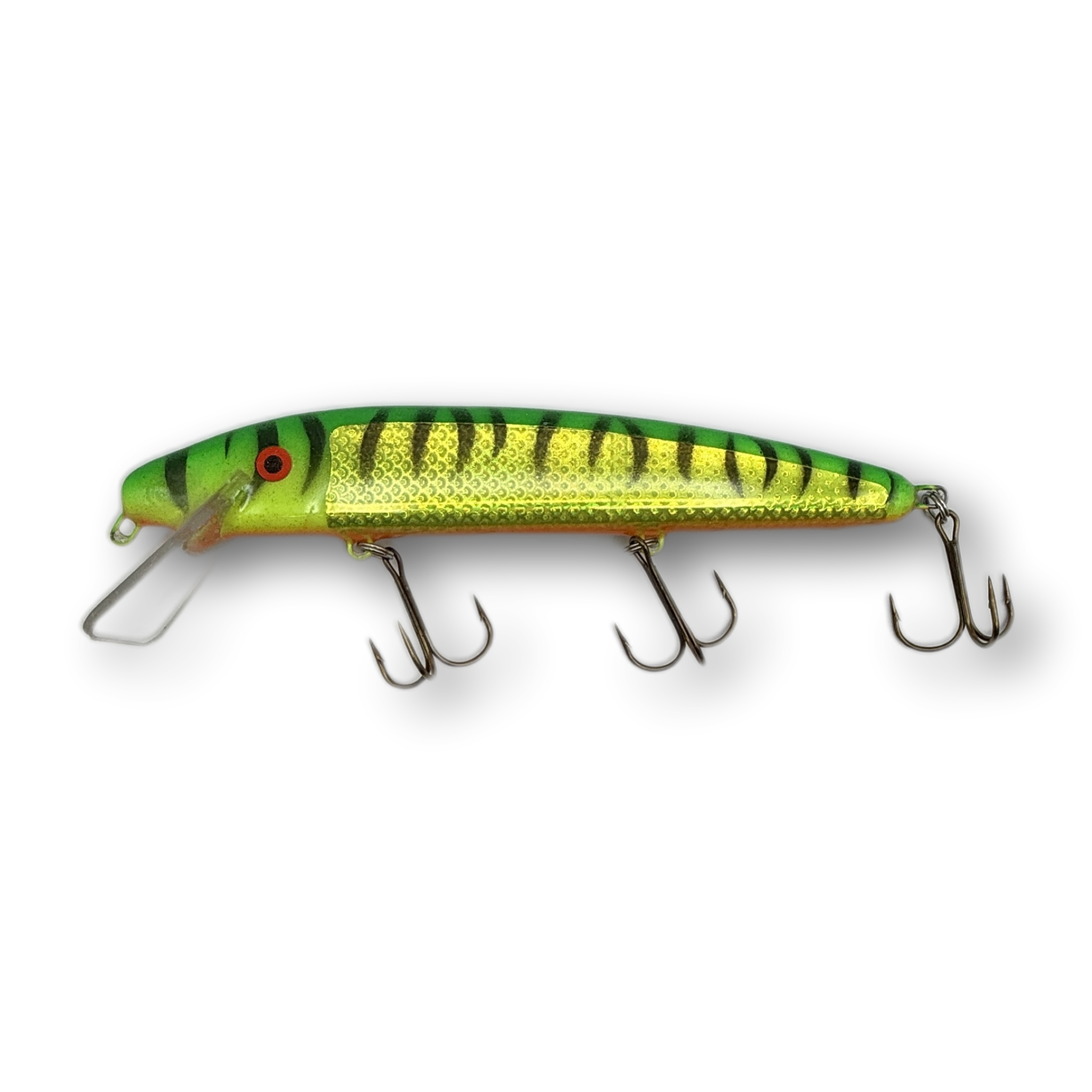 The 7 inch Minnow has been an all around favorite size in the Slammer line up. When casting, it runs down 2 to 3 feet with a super wide wobble that puts out tons of flash and vibration. When trolling it tracks true to 4 mph and runs down to 8 feet. Perfect for spring and fall twitching and trolling!