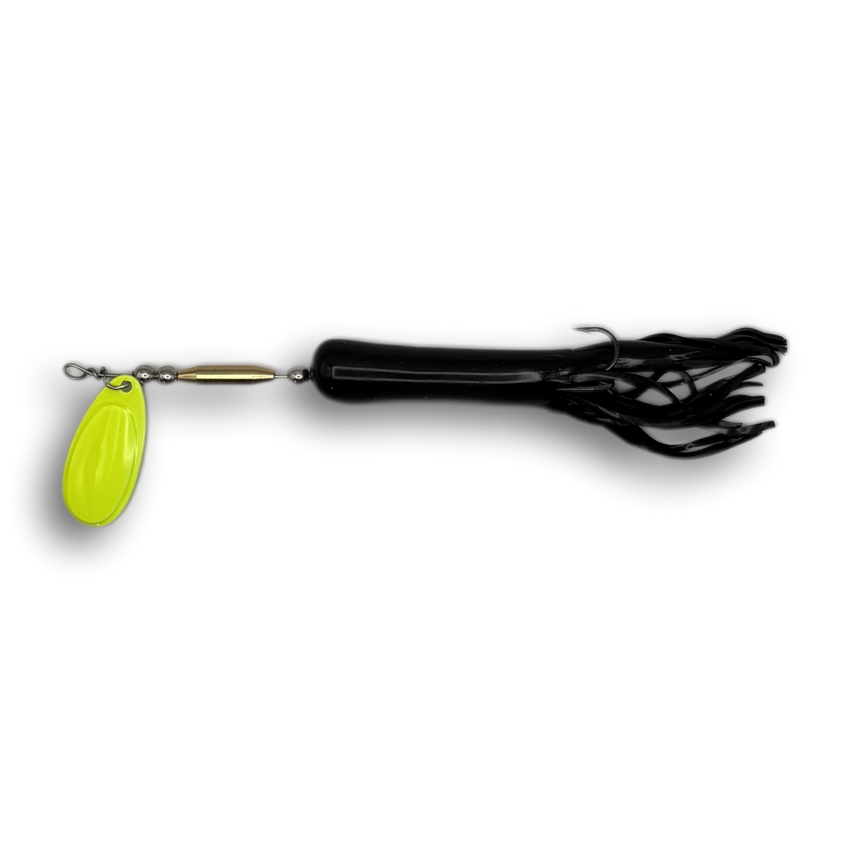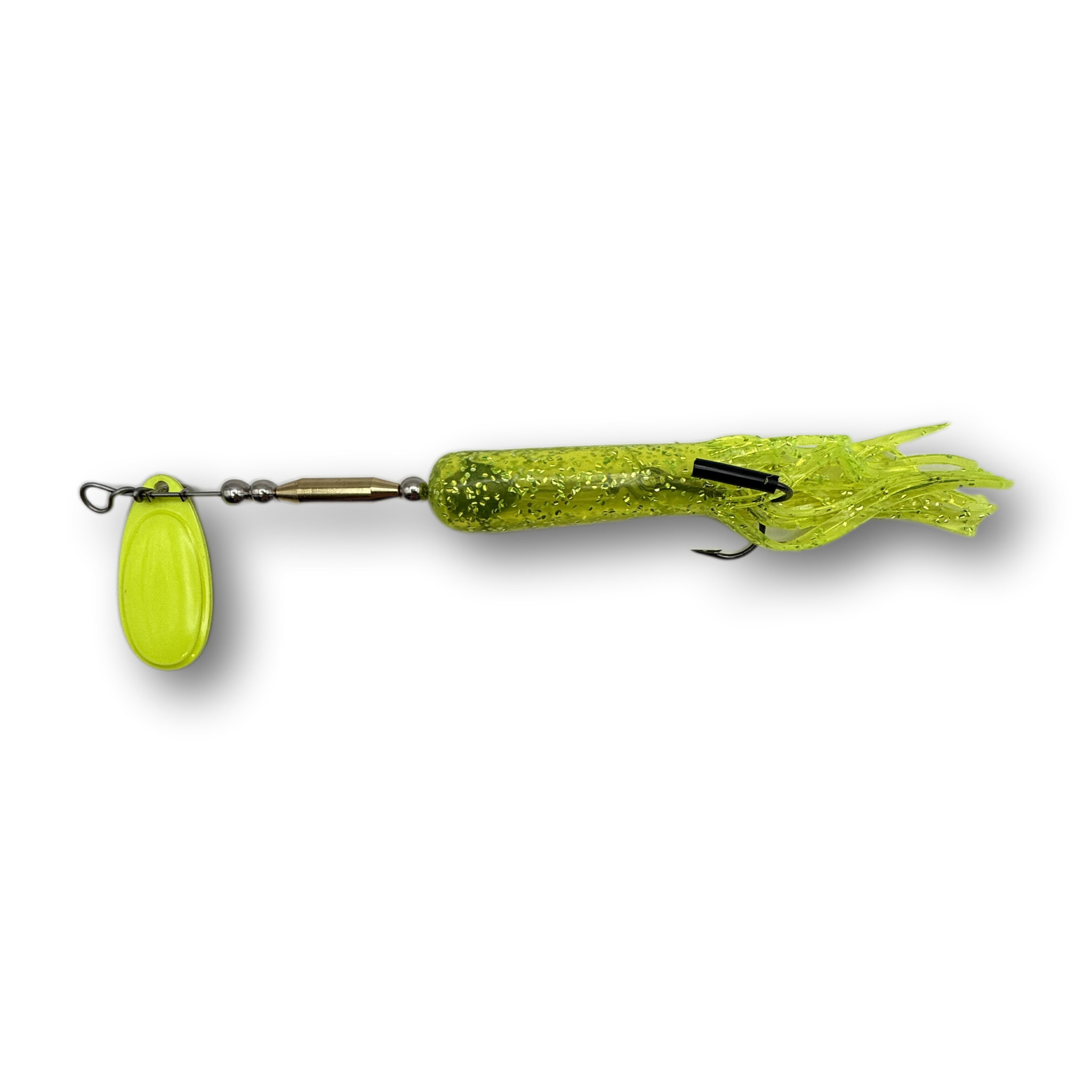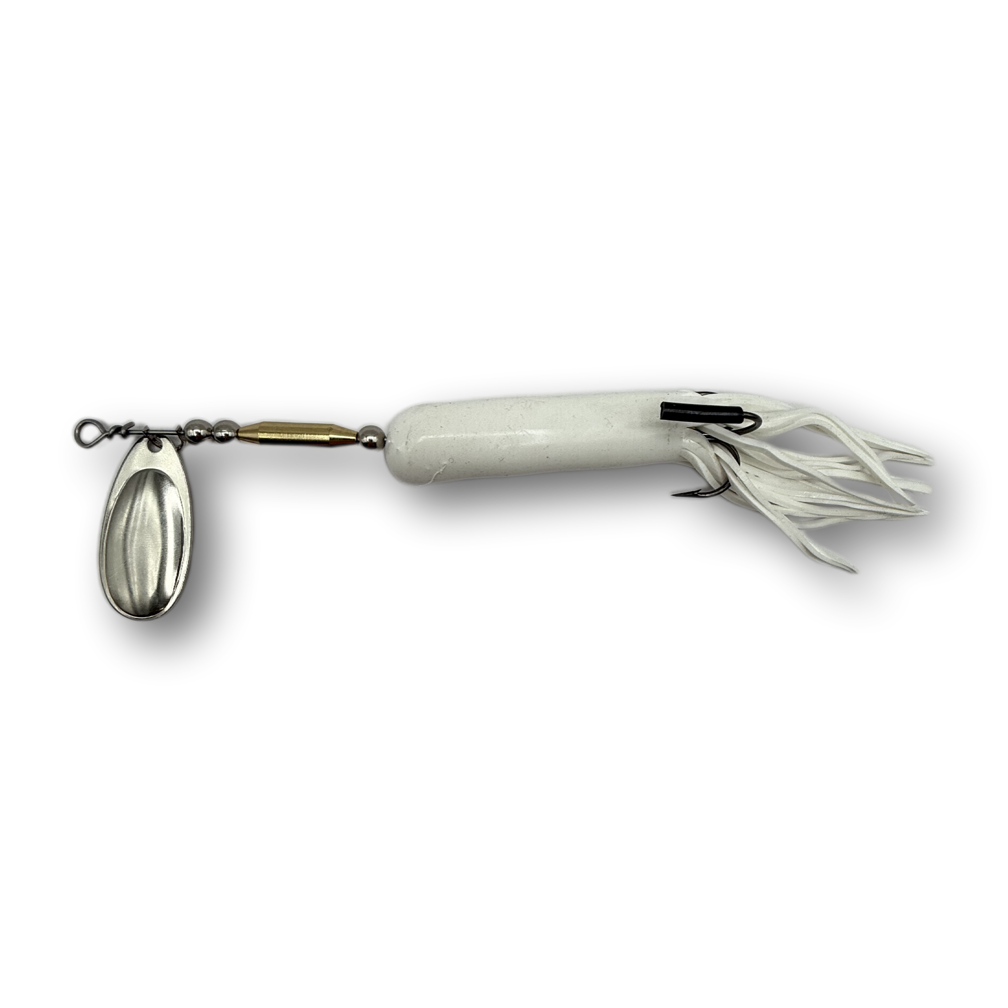 The Smity Wizard is a great lure based off of Tony Rizzo's classic Rizzo Wiz. Constructed with .051 wire, #6 Indiana Blade, Mustad Hook, and a large 5 inch tube. Weight 1.3oz.