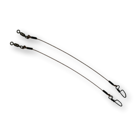 This Leader is perfect for use with smaller lures when fishing in waters with toothy critters! They are small enough so that you will not lose any action on your favorite lures and give them the protection they need from getting bit off. Made with 90# 7 Strand wire, 180# Mighty Might Barrel Swivel and #33 75# Coastlock Snap.