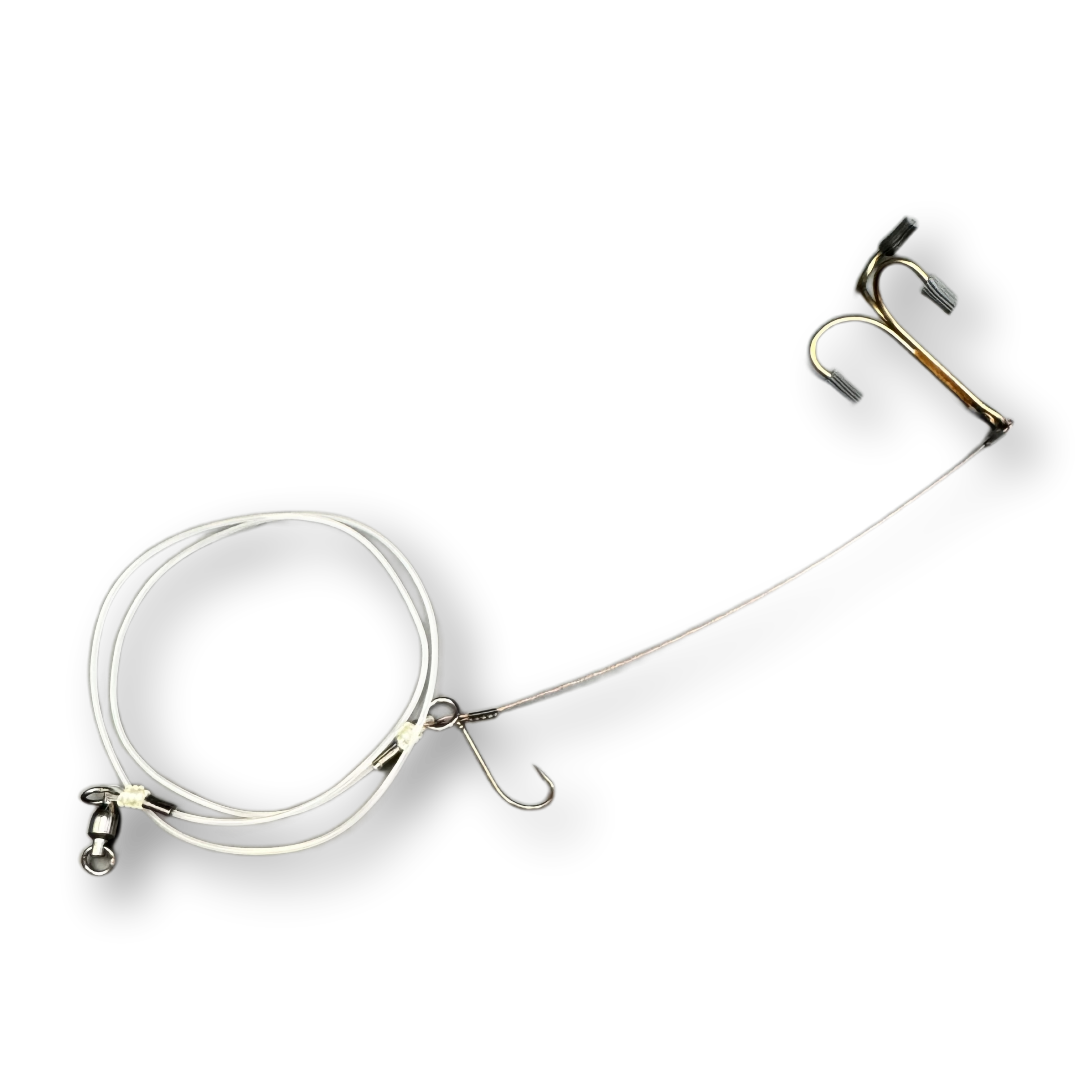 Original Hybrid Harness. Approx. 20″ lead of 130# Fluorocarbon to 90# 1×7 Stranded wire with a 4/0 Eagle Claw 774 Hook. Our Hybrid Harness is designed for quick rigging and effective use. It is one of the quickest and easiest rigs to use on the market today.