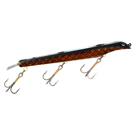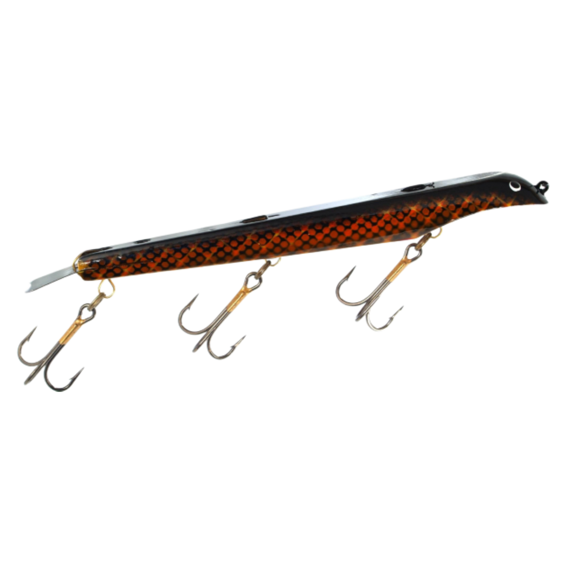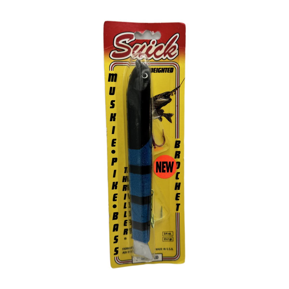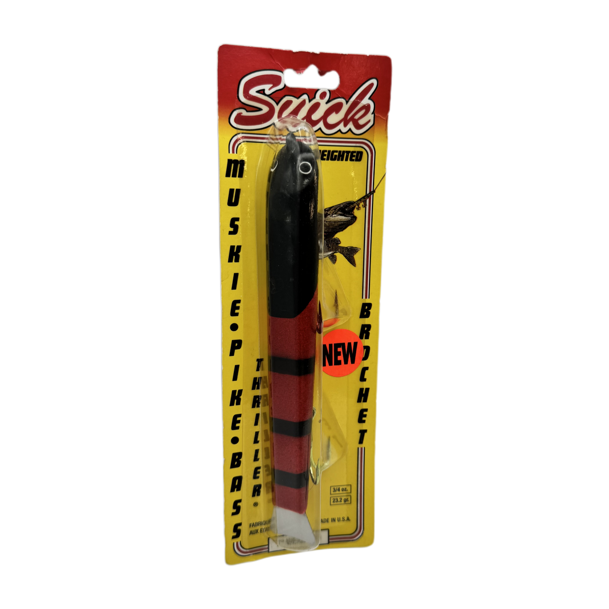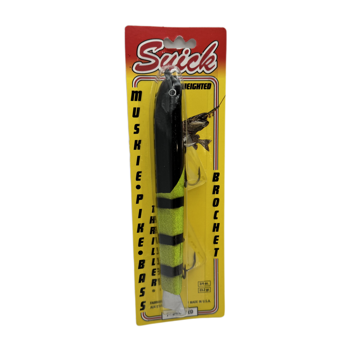 The 7″ Suick Weighted Thriller delivers the same legendary dive-and-rise action as its larger counterparts but in a more compact size. The added weight increases hang time on the pause, making it even more enticing to muskies and northern pike. Perfect for working deeper water, structure edges, or when a smaller profile is needed to trigger strikes.