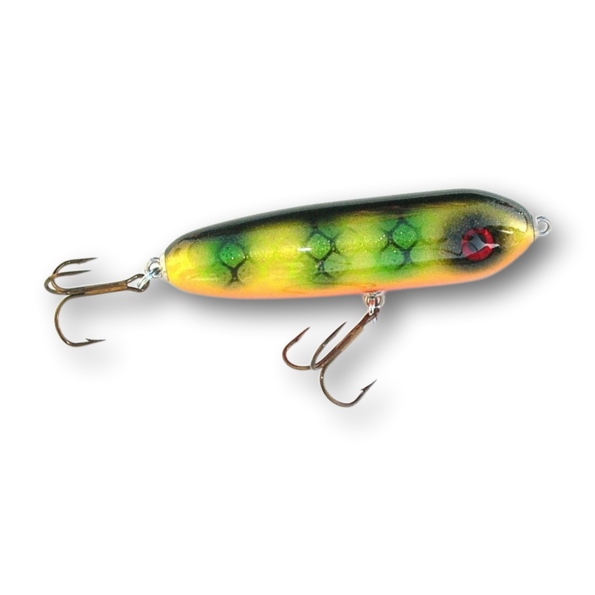 The Baby Wabull is a dive and glide jerkbait that will really DANCE when worked with the right rod action. In addition to the side-to-side glide that you would expect from a bait like this, the Wabull has a tremendous up-down action that is great at triggering fish. A proven fish catcher, the Wabull is great for those days when the muskies want something SLOW. Snap on a Wabull and keep it in her face!