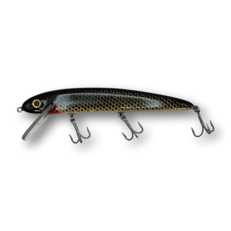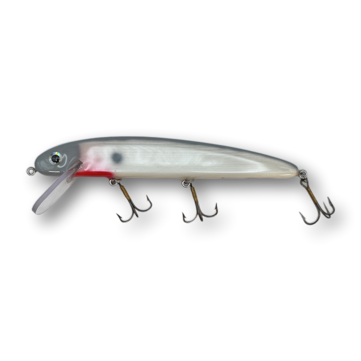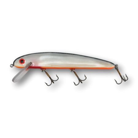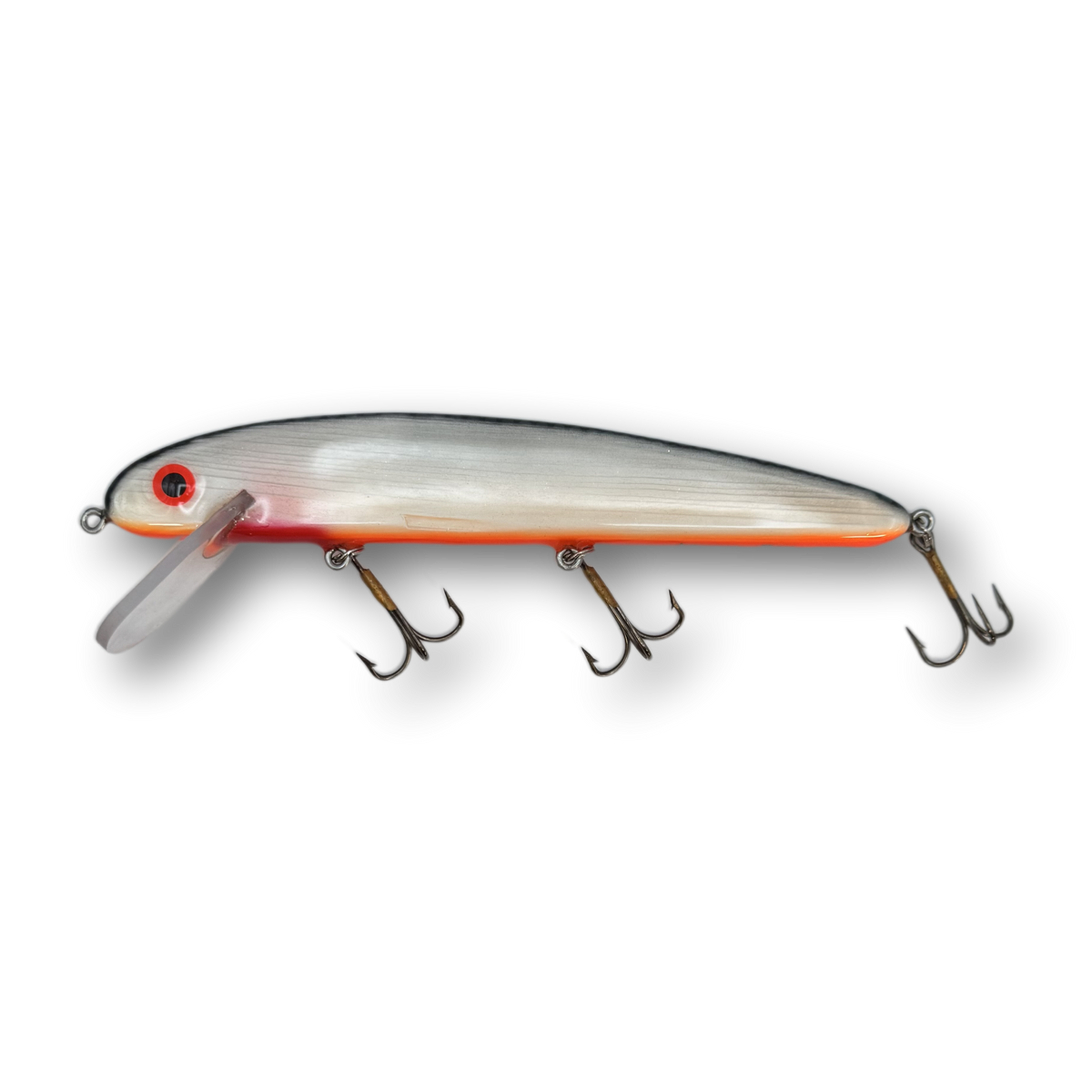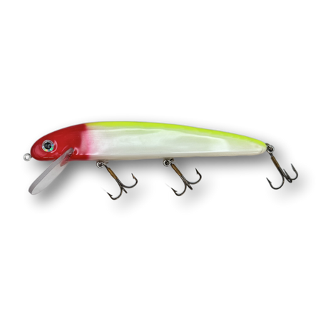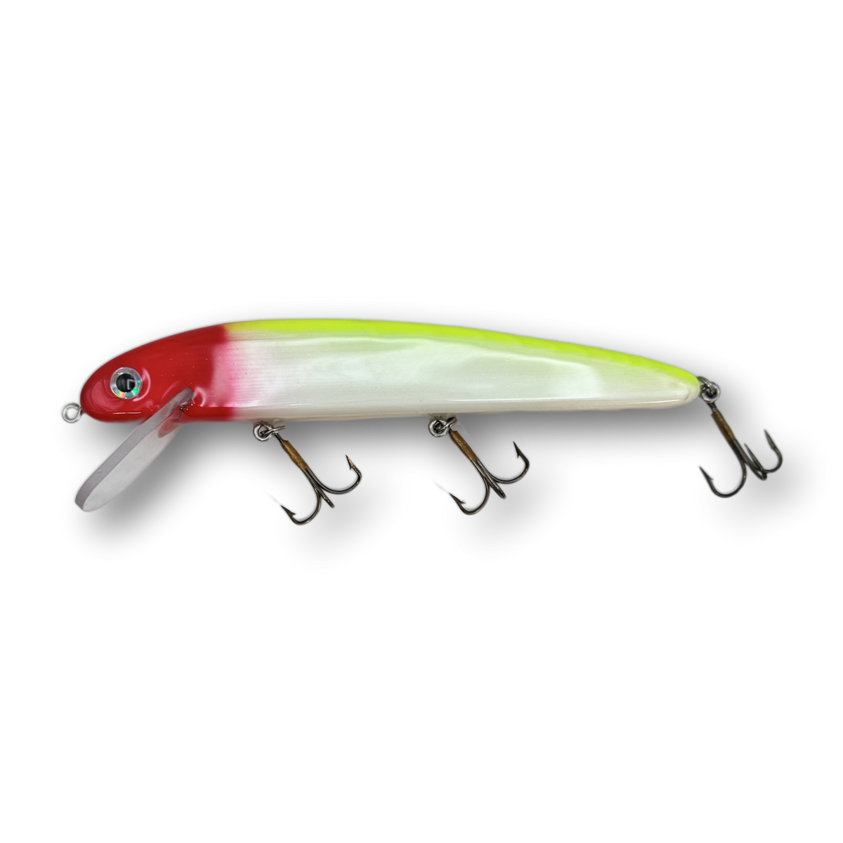 The Magnum Claw is a 9.5" long X 5/8" thick Cedar body. It will troll at speeds up to 5 Mph. .092 screw eyes. Eagle Claw 774 4/0 hooks.