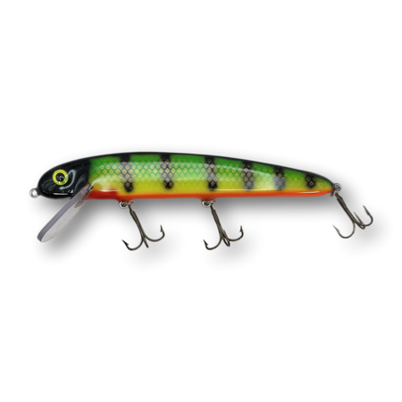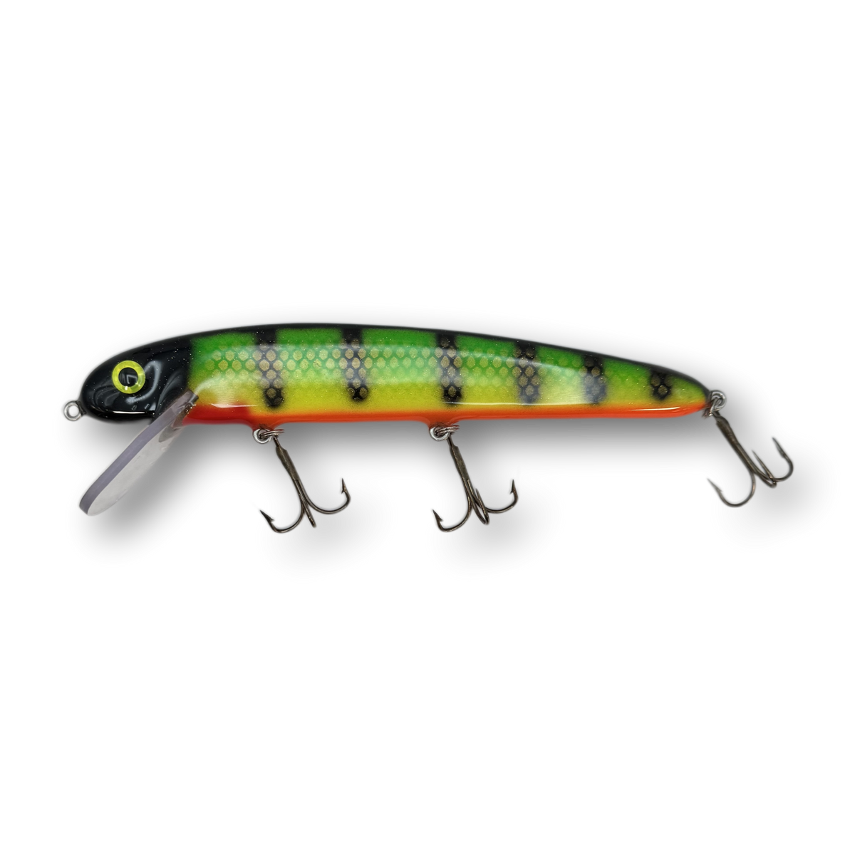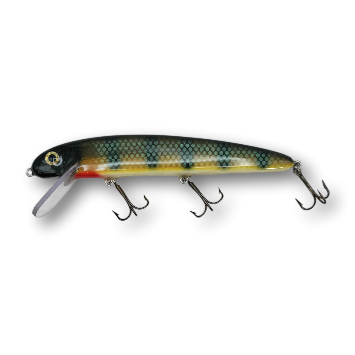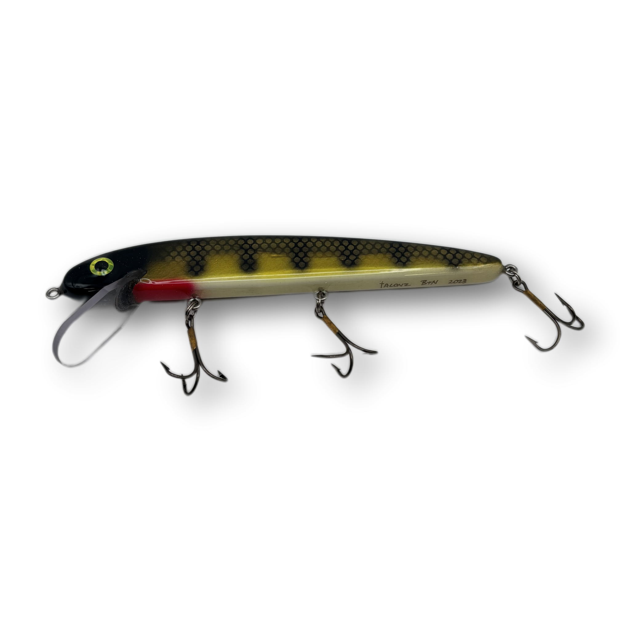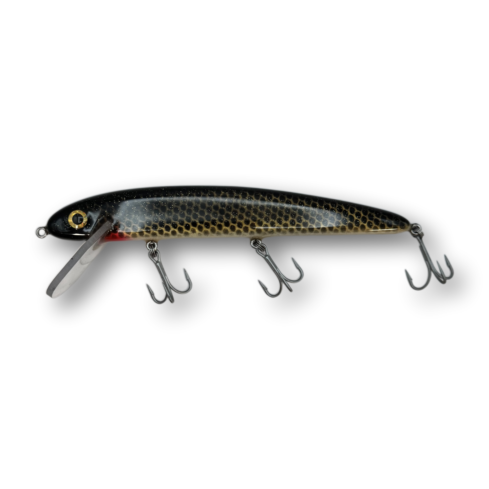 The Magnum Claw is a 9.5" long X 5/8" thick Cedar body. It will troll at speeds up to 5 Mph. .092 screw eyes. Eagle Claw 774 4/0 hooks.