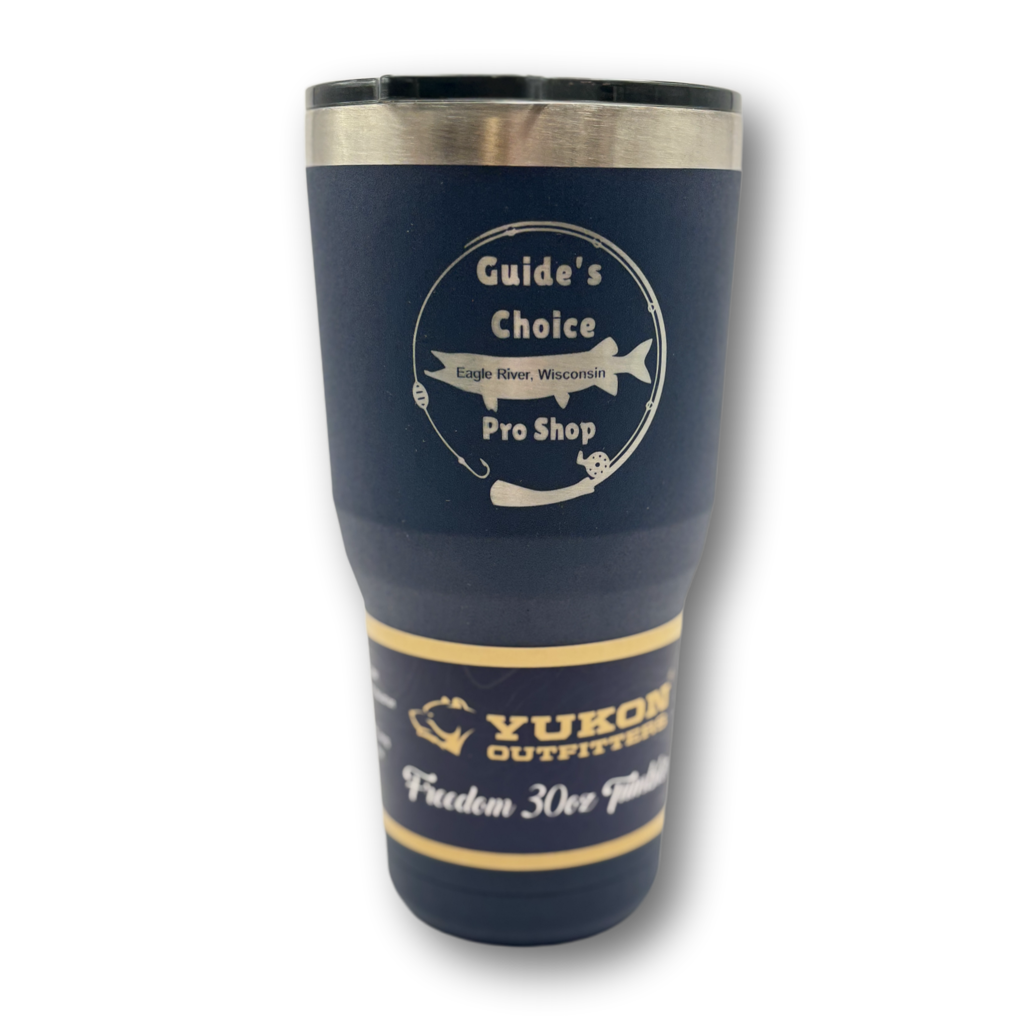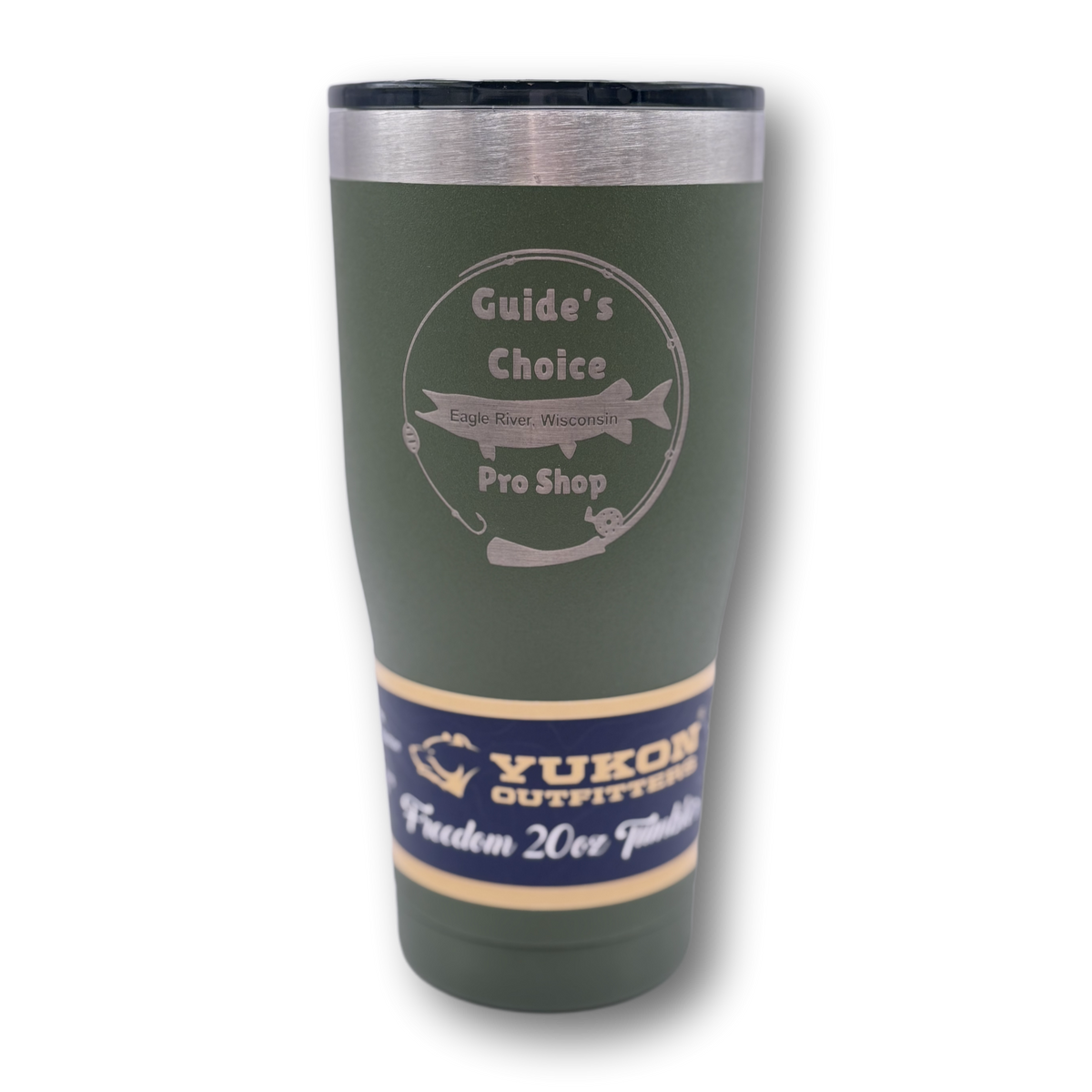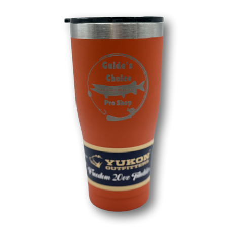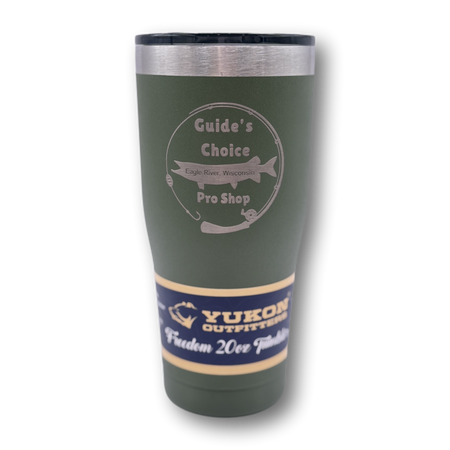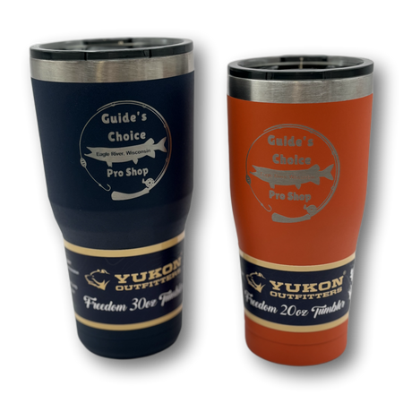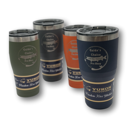Yukon Outfitter's Freedom Tumblers are known for their high performance and durability. Made of high grade 18/8 stainless steel and double wall vacuum insulated, they will keep your favorite beverage hot or cold for hours. Available in 20oz, 30oz sizes with the Guide's Choice Pro Shop logo laser engraved.